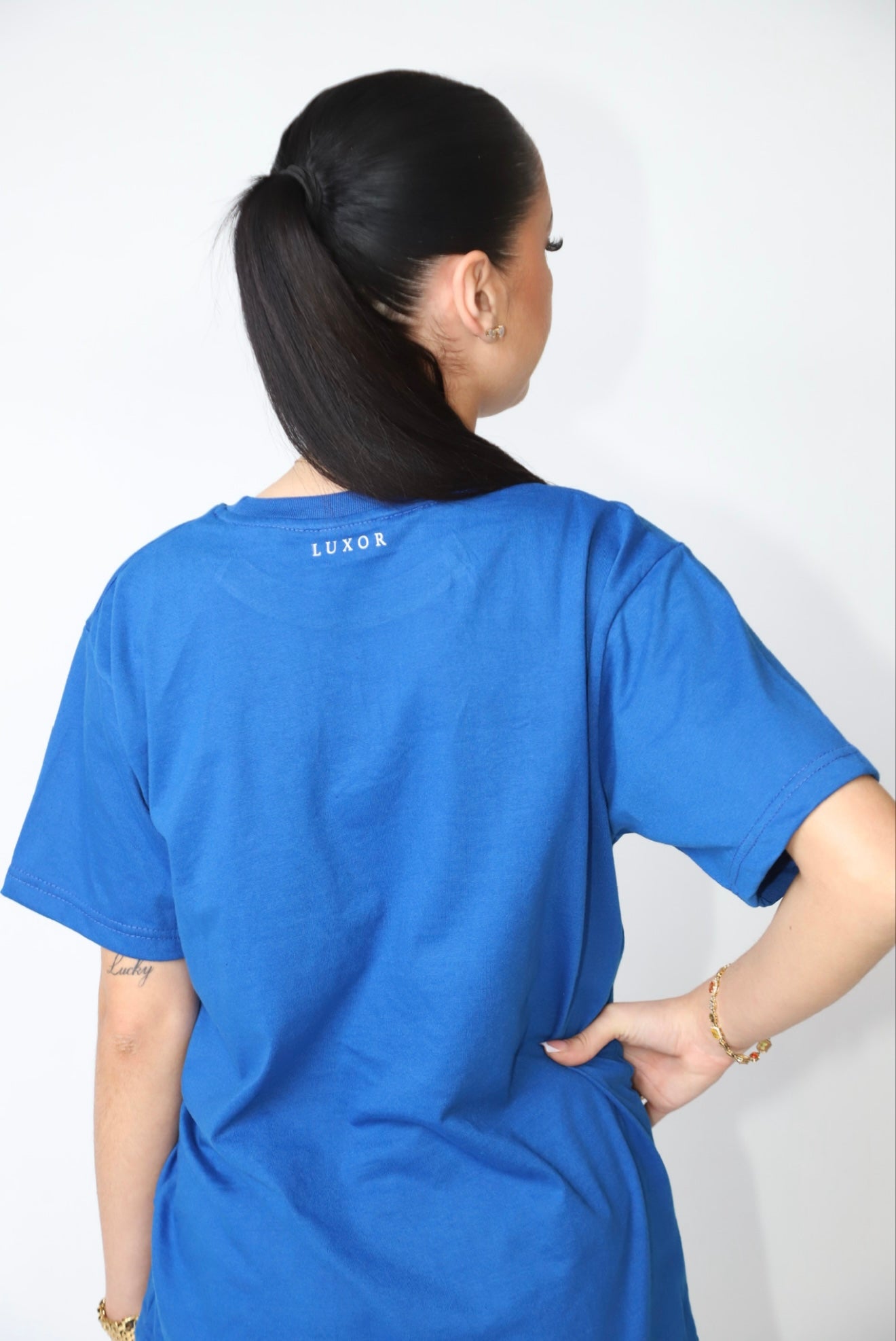 Mannelijke model is 186 cm en draagt XL.
